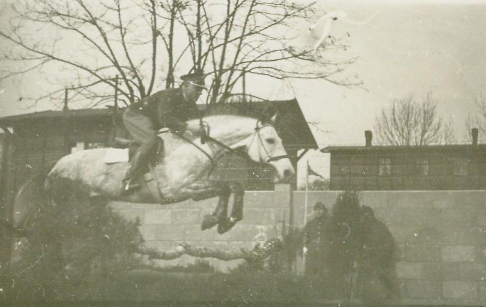 opis: por. Tadeusz Sokołowski 1 p.szw., skok przez hyrdę, siwa klacz