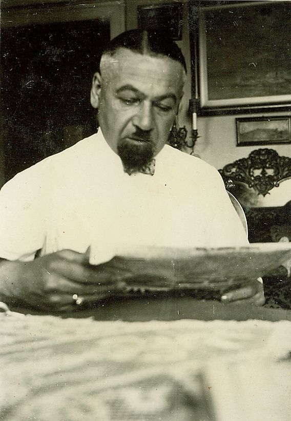 | Nr. inwentarzowy: MŁJ-XVI 1759 / 00 / 053 opis: Juliusz Leski (w białej koszuli) siedzi przy stole i czyta gazetę. W tle wnętrze mieszkania, widać m.in. obrazy, lichtarz, kilim.data: wrzesień 1936 r.czas powstania - daty graniczne: 1936-09-01 - 1936-09-30miejsce: Warszawaosoby: Inż. chem. Juliusz Leski 1884-1953 (artylerzysta, Legiony, wojna polsko-bolszewicka, w czasie II wojny światowej szef Kw. Gł. Naczelnego Wodza WP w Londynie. Zmarł w stopniu pułkownika WP. W l. 1918-26 organizator i dyrektor zakładów zbrojeniowych. Odzyskuje utraconą po zamachu majowym pozycję, reprezentując w Polsce holenderski przemysł stoczniowy. Ojciec Wandy, Anny i Kazimierza.tworzywo: papier fotograficzny, błyszczącytechnika: odbitka żelatynowo-srebrowa DOP, czarno-białazespół: album rodziny Bohdanowiczówwymiary (wys. x szer.): 83 x 58 [mm]