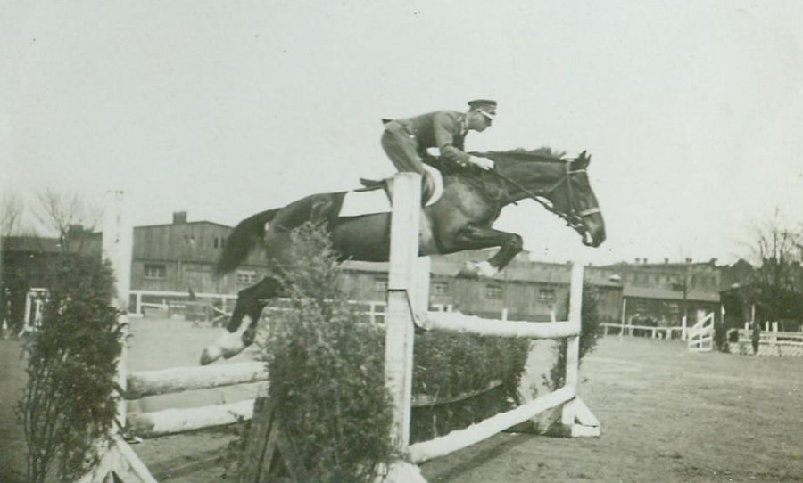 | Nr. inwentarzowy: MŁJ-XVI 1517 / 00 / 041 opis: por. Romuald Trajchel 3. p.szw., skok przez double-barredata: wiosna 1933czas powstania - daty graniczne: 1933-03-01 - 1933-08-12miejsce: Polska, Grudziądz, C.W.K. [Centrum Wyszkolenia Kawalerii]osoby: por. Romuald Trajchel, uczestnik X KIJK 17.10.1932-12.08.1933inne nazwy własne: X Kurs Instruktorów Jazdy Konnejtworzywo: papier fotograficzny, błyszczącytechnika: odbitka żelatynowo-srebrowa DOP, czarno-białazespół: album rodziny Nieniewskichwymiary (wys. x szer.): 60 x 91 [mm]