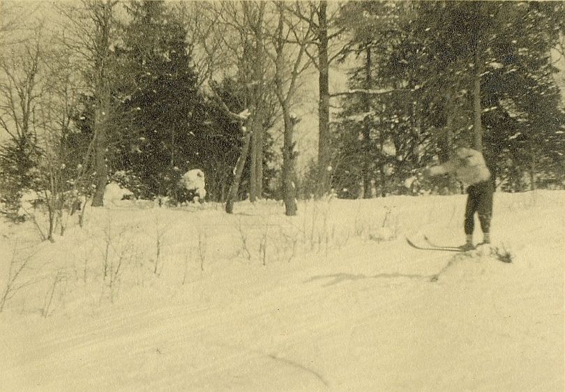 | Nr. inwentarzowy: MŁJ-XVI 1759 / 00 / 043 opis: Rtm. Michał Bohdanowicz na nartach. Mężczyzna w czapce, bluzie, spodniach i butach narciarskich. Skacze przez "hopkę" - mały próg wybudowany na stoku ze śniegu. Sylwetka jaką przyjmowali skoczkowie narciarscy w tych czasach, z rękami do przodu. Dużo śniegu, krzewy drzewa. Zdjęcie niewyraźne.data: luty 1936 r.czas powstania - daty graniczne: 1936-02-01 - 1936-02-29miejsce: Nowo-Wilejka, Nowa Wilejka, obecnie Litwaosoby: Rtm. Michał Bohdanowicz 1903-48 (syn Jana Bohdanowicza i Marii z Cywińskich. W latach 1932-36 i przed II wojną w 4 Pułku Ułanów Zaniemeńskich, od 1936 w 13 Pułku Ułanów Wileńskich; nazywany "Misiem"; miłośnik sportu, zwłaszcza wyścigów płotowych, przeszkodowych i biegów na przełaj).tworzywo: papier fotograficzny, matowytechnika: odbitka żelatynowo-srebrowa DOP, czarno-białazespół: album rodziny Bohdanowiczówwymiary (wys. x szer.): 57 x 80 [mm]