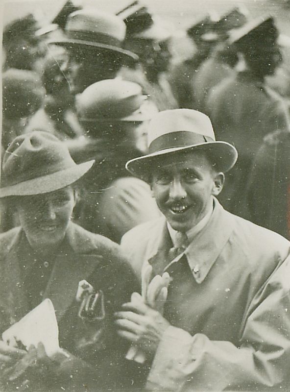 | Nr. inwentarzowy: MŁJ-XVI 1760 / 00 / 053 opis: Konkursy skoków przez przeszkody. Wanda i Jurek Pietraszewski. Oboje w kapeluszach, płaszczach, z rękawiczkami w ręku. Kobieta z torebka i prawdopodobnie programem. W tle inni kibice.data: okres trwania konkursów w Łazienkach, w albumie: czerwiec 1937 r.czas powstania - daty graniczne: 1937-05-27 - 1937-06-07miejsce: Warszawa, hipodrom w Łazienkachosoby: Wanda Bohdanowicz 1908-1991 (z domu Leska, żona rtm. Michała Bohdanowicza, miłośniczka sportów konnych, wyścigów); Jerzy Pietraszewski 1903-1974 lub 1982 („Jurek”, syn Zygmunta wł. maj. w Drzazgowej Woli i Janiny zd. Wróblewskiej, brat Zofii).tworzywo: papier fotograficzny, błyszczącytechnika: odbitka żelatynowo-srebrowa DOP, czarno-białazespół: album rodziny Bohdanowiczówwymiary (wys. x szer.): 55 x 41 [mm]