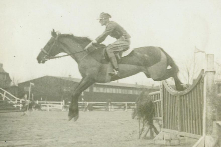 opis: por. Kazimierz Nieniewski 4 p.s.k. na klaczy Wersja – skok przez bramkę