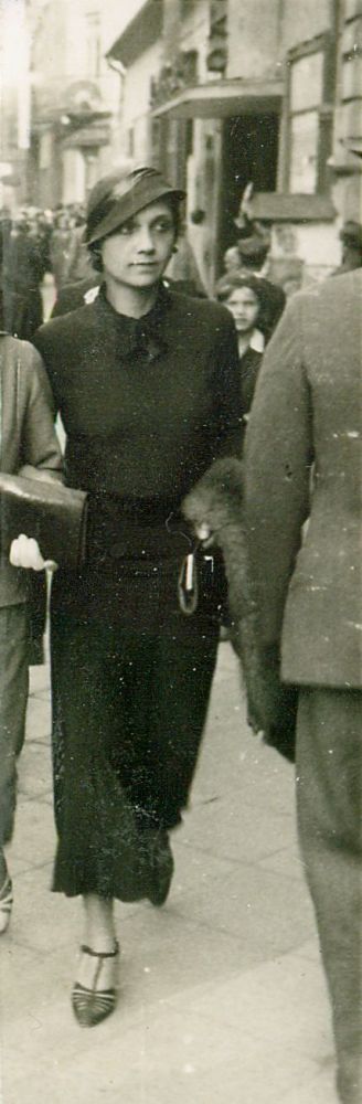 | Nr. inwentarzowy: MŁJ-XVI 1757 / 00 / 065 opis: Zofia Olędzka (ubrana na ciemno) spaceruje warszawska ulicą. Kobieta trzyma pod rękę drugą osobę, ale w kadrze jest niewielka część sylwetki tej osoby (Anna Leska?).data: czerwiec 1934 r.czas powstania - daty graniczne: 1934-06-01 - 1934-06-30miejsce: Warszawaosoby: Zofia Olędzka; może: Anna Leska 1910-1998 ("Anka", siostra Wandy, później Leska-Daab, podczas II wojny światowej pilot w Wielkiej Brytanii).tworzywo: papier fotograficzny, błyszczącytechnika: odbitka żelatynowo-srebrowa DOP, czarno-białazespół: album rodziny Bohdanowiczówwymiary (wys. x szer.): 75 x 26 [mm]