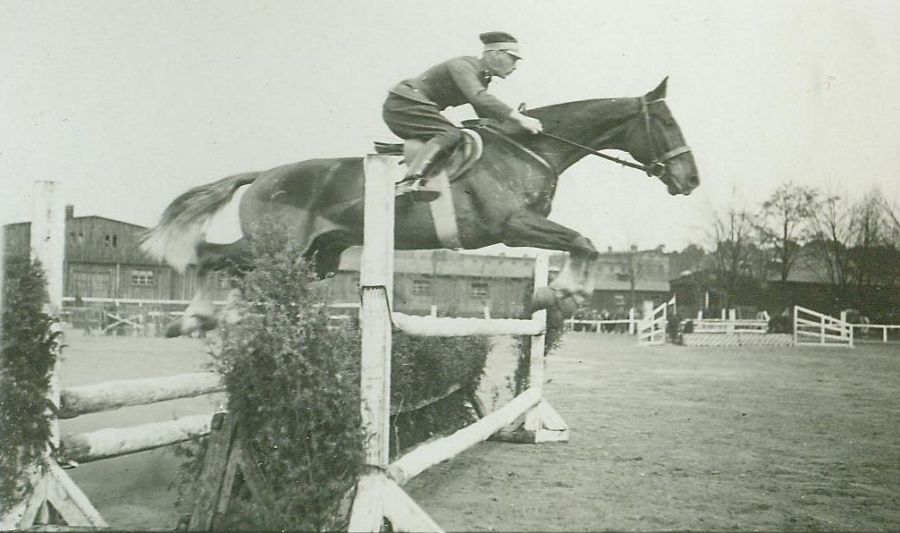 | Nr. inwentarzowy: MŁJ-XVI 1517 / 00 / 045 opis: por. Konrad Karklin, Łotwa, skok przez double-barredata: wiosna 1933czas powstania - daty graniczne: 1933-03-01 - 1933-08-12miejsce: Polska, Grudziądz, C.W.K. [Centrum Wyszkolenia Kawalerii]osoby: por. Konrad Karklin, uczestnik X KIJK 17.10.1932-12.08.1933 i IV WKIJK 15.10.1933-11.08.1934inne nazwy własne: X Kurs Instruktorów Jazdy Konnej; IV Wyższy Kurs Instruktorów Jazdy Konnej; Konrads Karklinš [łot.]; Konrads Karklins [ang.]tworzywo: papier fotograficzny, błyszczącytechnika: odbitka żelatynowo-srebrowa DOP, czarno-białazespół: album rodziny Nieniewskichwymiary (wys. x szer.): 60 x 92 [mm]