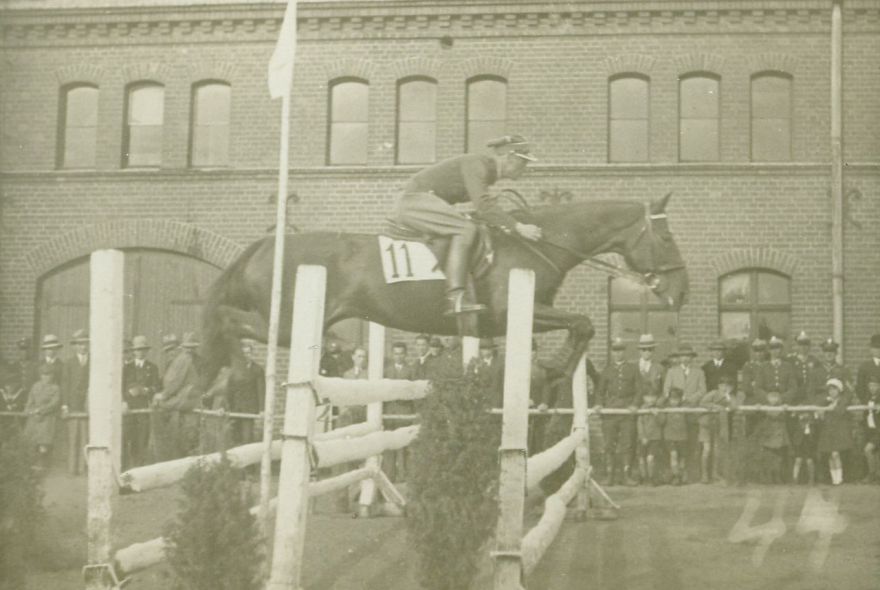 opis: por. Jan Mossakowski 1 p.s.k., skok przez piramidkę, na potniku nr 11