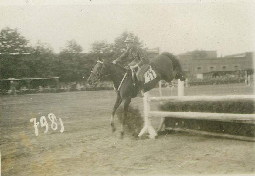 opis: por. Janusz Komorowski 1 p.u., skok przez hyrdę ze stacjonatą; na potniku nr 14 - faza lądowania
