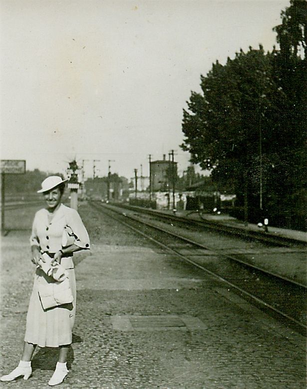 | Nr. inwentarzowy: MŁJ-XVI 1760 / 00 / 024 opis: Na brukowanym drobna kostką peronie dworca stoi Wanda Bohdanowiczowa w jasnym, letnim ubraniu. Trzyma torebkę, gazetę, zawiniątko - ciastka? Widać tory, urządzenia i sygnalizatory kolejowe, nieczytelną tablicę, drzewa i zabudowania.data: lipiec 1937 r.czas powstania - daty graniczne: 1937-07-01 - 1937-07-31miejsce: Polska, dworzec kolejowyosoby: Wanda Bohdanowicz 1908-1991 (z domu Leska, żona rtm. Michała Bohdanowicza, miłośniczka sportów konnych, wyścigów).tworzywo: papier fotograficzny, błyszczącytechnika: odbitka żelatynowo-srebrowa DOP, czarno-białazespół: album rodziny Bohdanowiczówwymiary (wys. x szer.): 55 x 43 [mm]