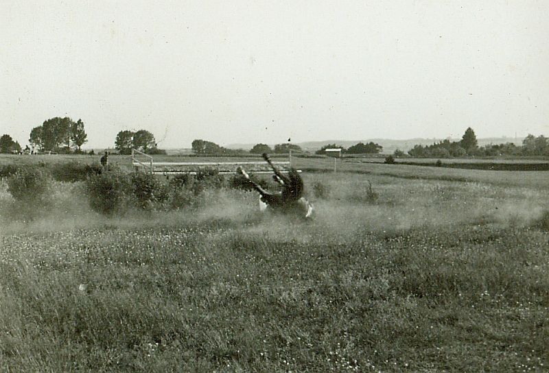 | Nr. inwentarzowy: MŁJ-XVI 1761 / 02 / 007 opis: Teren przy torze wyścigowym - bieg na przełaj łączący sport i wyścigi, prowadzący częściowo poza torem. Pierwsze ujęcie upadku por. Andrzeja Szamoty z ogierem Margas. Przed przeszkodą, na rozległym, zielonym terenie widać głównie przewracającego się konia.data: 18 czerwca - 2 lipca 1939 - czas trwania mitingu wyścigowego w Wilnieczas powstania - daty graniczne: 1939-06-18 - 1939-07-02miejsce: Wilno, Pośpieszkaosoby: Ppor. Andrzej Szamota h. Prawdzic (13 p.u., 1939 awans na porucznika, poległ 24 września 1939 pod Suchowolą - na tydzień przed planowanym ślubem z Izabelą Borowską).tworzywo: papier fotograficzny, błyszczącytechnika: odbitka żelatynowo-srebrowa DOP, czarno-białazespół: album rodziny Bohdanowiczówwymiary (wys. x szer.): 60 x 85 [mm] Koń: 1. Margas, ogier, maść kasztanowata, ur. 1933 - wł. mjr W. Bobińskiego; w 1939 r. og. kaszt. mjr. W. Bobińskiego; w 1939 r. w Wilnie właściciel startował na nim w gonitwie przeszkodowej, a por. A. Szamota biegu na przełaj