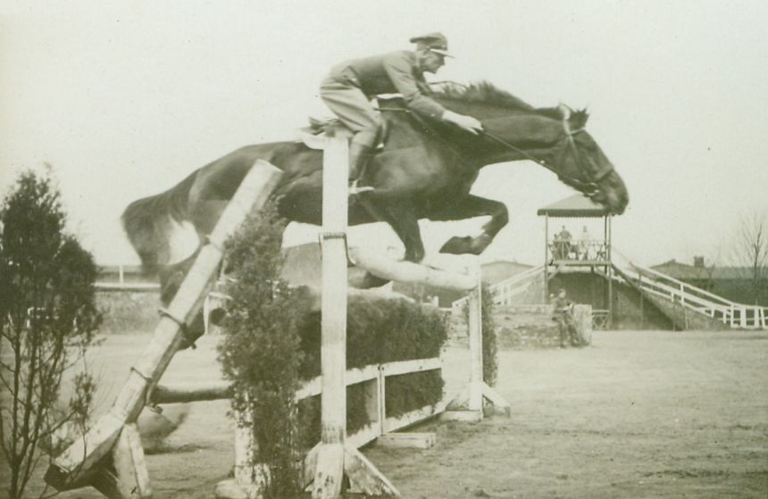 | Nr. inwentarzowy: MŁJ-XVI 1518 / 00 / 016 opis: por. Kazimierz Nieniewski 4 p.s.k. na klaczy Wersja(?) – nieudany skok przez okser, III Wyższy Kurs Instruktorów Jazdy Konnej [trwał od 15.10.1932]data: strój jeźdźca sugeruje, że nie jest to środek zimy, a ostrzyżony koń i bezlistne drzewa, iż nie jest to latoczas powstania - daty graniczne: 1933-03-01 - 1933-08-12miejsce: Polska, Grudziądz, C.W.K. [Centrum Wyszkolenia Kawalerii]osoby: por. Kazimierz Nieniewski - uczestnik IX KIJK 15.10.1931-15.08.1932 i III WKIJK 15.10.1932-12.08.1933inne nazwy własne: IX Kurs Instruktorów Jazdy Konnej; III Wyższy Kurs Instruktorów Jazdy Konnejtworzywo: papier fotograficzny, błyszczącytechnika: odbitka żelatynowo-srebrowa DOP, czarno-białazespół: album rodziny Nieniewskichwymiary (wys. x szer.): 60 x 92 [mm] Koń: 1. Wersja, klacz