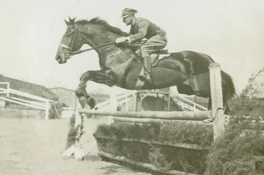 opis: por. Kazimierz Nieniewski 4 p.s.k. na wałachu Sawannah – skok przez okser