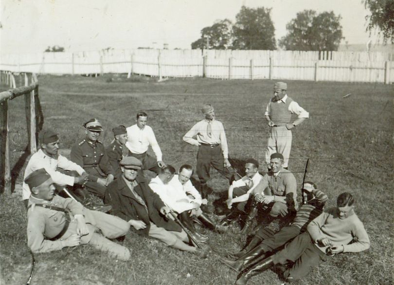 | Nr. inwentarzowy: MŁJ-XVI 1757 / 00 / 020 opis: Kilkunastu mężczyzn odpoczywa w trawiastym rowie, niektórzy w mundurach, inni w cywilnych strojach jeździeckich. Podpis w albumie: "na robocie" sugeruje, że odpoczywają w przerwie w treningu wyścigowym.data: czerwiec-lipiec 1934 r.czas powstania - daty graniczne: 1934-06-01 - 1934-07-31miejsce: Wilno, Pośpieszkatworzywo: papier fotograficzny, błyszczącytechnika: odbitka żelatynowo-srebrowa DOP, czarno-białazespół: album rodziny Bohdanowiczówwymiary (wys. x szer.): 81 x 110 [mm]