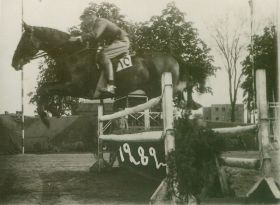 81. MŁJ-XVI 1518/00/011 skoki przez przeszkody, zawody konne, konkursy hipiczne , por. Kazimierz Nieniewski - uczestnik IX KIJK ...
