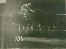 83. MŁJ-XVI 1518/00/013 skoki przez przeszkody, zawody konne, konkursy hipiczne , por. Kazimierz Nieniewski - uczestnik IX KIJK ...