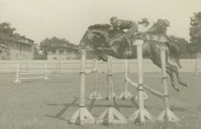 119. MŁJ-XVI 1518/00/049 skoki przez przeszkody, trening , por. Henryk Gąsecki, uczestnik III WKIJK 15.10.1932-12.08.1933