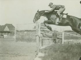 186. MŁJ-XVI 1519/00/037 skoki przez przeszkody, trening , mjr Józef Trenkwald (1897-1956), wybitny jeździec, instruktor jazdy ...