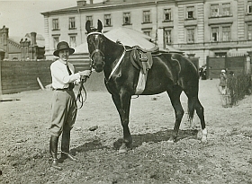 51. MŁJ-XVI 1744/00/030 konie, portret , Ppłk Karol Rómmel (1888-1967), wybitny jeździec i trener. Startował na IO w 1912 – skoki, ...