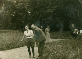 61. MŁJ-XVI 1628/00/047 życie codzienne , p. Skomorowski, Maria Kraińska (1916-2002), Jadwiga Grothhus (1920-2011) - córka Gustawa i ...
