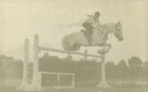 60. MŁJ-XVI 1641/00/026 skoki przez przeszkody, trening(?), zawody konne(?), konkursy hipiczne(?) , Gertruda Rowecka z domu ...