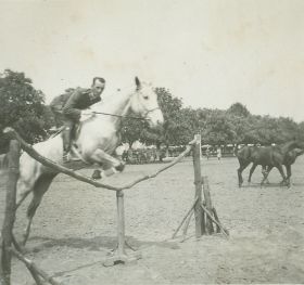 58. MŁJ-XVI 1641/00/019 skoki przez przeszkody, trening , Eryk [Ija] Brabec z Poznania (1916-1996, późniejszy wieloletni Sekretarz ...