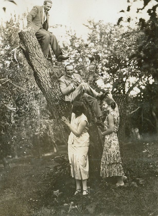 | Nr. inwentarzowy: MŁJ-XVI 1745 / 00 / 009 opis: Cztery osoby na i przy drzewie ze ściętą koroną. Mężczyźni w garniturach, kobiety w letnich sukienkach. Najwyżej Kazimierz Ważyński, niżej Władysław Lenczewski, stoją: Nina Michalewska (patrzy na mężczyzn na drzewie) i Anna Leska.