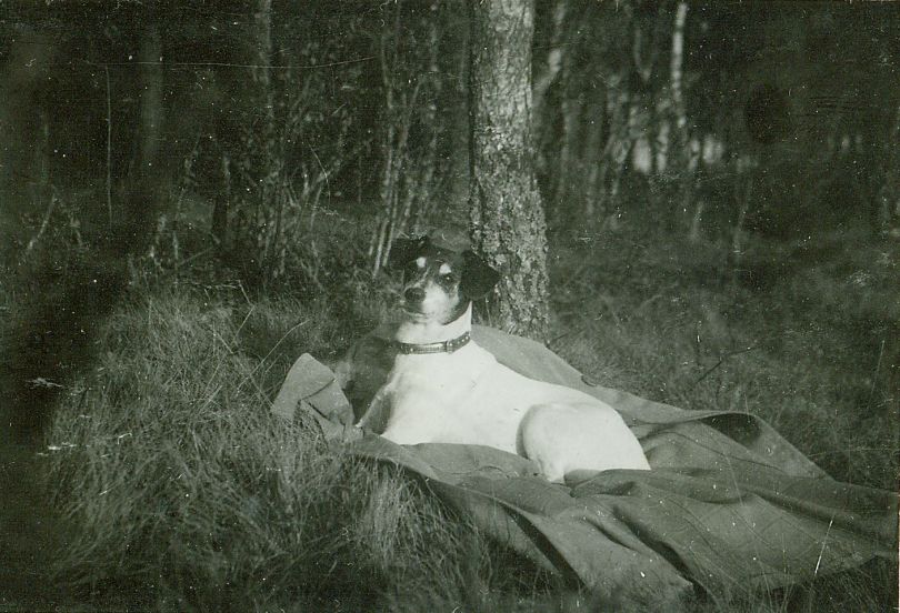 Nr. inwentarzowy: MŁJ-XVI 1757 / 00 / 076 opis: Pod drzewami, na rozłożonym na trawie płaszczu leży pies Bobik, prawdopodobnie rasy jack russell terrier gładkowłosy.data: październik 1934 r.czas powstania - daty graniczne: 1934-10-01 - 1934-10-31miejsce: Stajki - majątek Bohdanowiczów, obecnie wieś na Białorusi w rejonie wilejskim, obwodu mińskiegotworzywo:papier fotograficzny, błyszczącytechnika:odbitka żelatynowo-srebrowa DOP, czarno-białazespół:album rodziny Bohdanowiczówwymiary (wys. x szer.): 58 x 82 [mm]