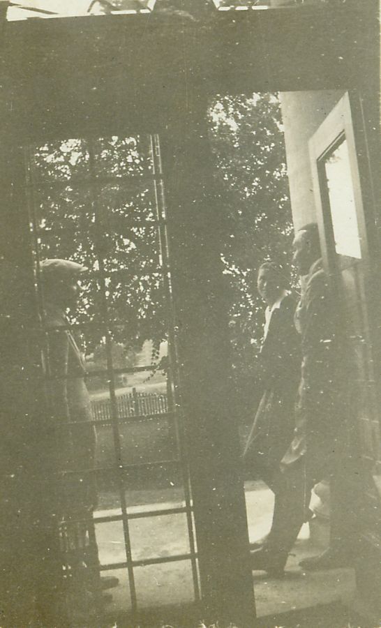 | Nr. inwentarzowy: MŁJ-XVI 1640 / 00 / 051 opis: Rajd Poznań-Gdynia, zorganizowany przez Śląski Klub Jazdy Konnej. W wejściu do budynku (widok z wnętrza) stoją: mężczyzna w kaszkiecie i dwoje uczestników rajdu: St. Grabianowski i K. Dobrogoyska. Przez oszklone drzwi widać zieleń.data: podano początkową i końcową datę rajduczas powstania - daty graniczne: 1933-08-03 - 1933-08-28miejsce: Gdynia, Chylonia [Chylonja], Plac Dworcowy. Nowo wybudowana willa-dworek - budynek mieszkalny kierownictwa Zakładów Gazowych.osoby: inż. Stanisław Grabianowski (1889-1957, szef wyprawy) i Krystyna Dobrogoyska (1902-1975)tworzywo: papier fotograficzny, błyszczącytechnika: odbitka żelatynowo-srebrowa DOP, czarno-białazespół: album rodziny Brökerewymiary (wys. x szer.): 73 x 47 [mm]