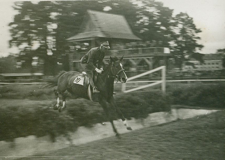 2. Cacko - hod. T. Karłowski, wł. M.S.Wojsk., koń, który startował w 1938 roku w Wilnie-Pośpieszce w gonitwach przeszkodowych pod ppor. Orskim, na zdjęciu: niewidoczny, II miejsce