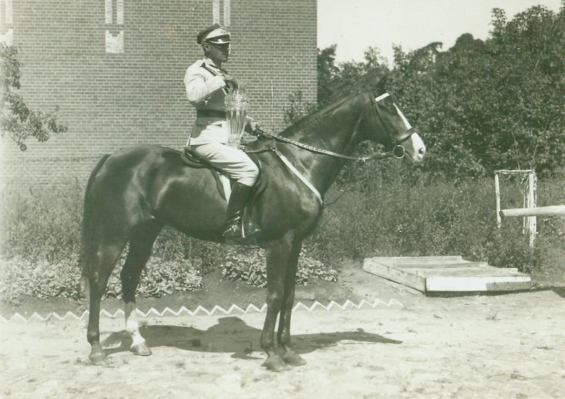| Nr. inwentarzowy: MŁJ-XVI 1519 / 00 / 003 opis: rtm. Kazimierz Szosland 2 p.u. z kryształowym pucharem w ręku (Nagroda Marszałka Polski Józefa Piłsudskiego, Konkurs w Gdyni 1931) siedzi na stojącym koniu, rząd sportowy, koń - Allidata: po konkursach hipicznych w Gdyni, które trwały od 23 lipca 1931czas powstania - daty graniczne: 1931-07-23 - 1935-12-31miejsce: Polska, Grudziądz, C.W.K. [Centrum Wyszkolenia Kawalerii]osoby: rtm. Kazimierz Szosland, uczestnik III KIJK, od jesieni 1928 r. instruktor jazdy w Szkole Podchorążych Kawalerii, od 1932 r. instruktor KIJK. Olimpijczyk 1924 (skoki i WKKW) i 1928 (skoki - 13. ind., 2. zespół)inne nazwy własne: Kaktus - wcześniejsza nazwa konia Allitworzywo: papier fotograficzny, błyszczącytechnika: odbitka żelatynowo-srebrowa DOP, czarno-białaautor: Hofman Władysław (1876–1948, mjr/płk lek. wet., CWK, w czasie wojny współpracował z Niemcami)zespół: album rodziny Nieniewskichwymiary (wys. x szer.): 87 x 119 [mm] Koń: 1. Alli vel Kaktus, wałach, rasa: półkrwi, maść kasztanowata, ur. 1916 - hod. Stefan Walewskiego. Skoczek, koń służb. rtm. J. Sienkiewicza, potem por. E. Grunwalda. Pod Szoslandem w 1928 r. na IO w Amsterdamie – indywidualnie 13., srebro zespołowo.