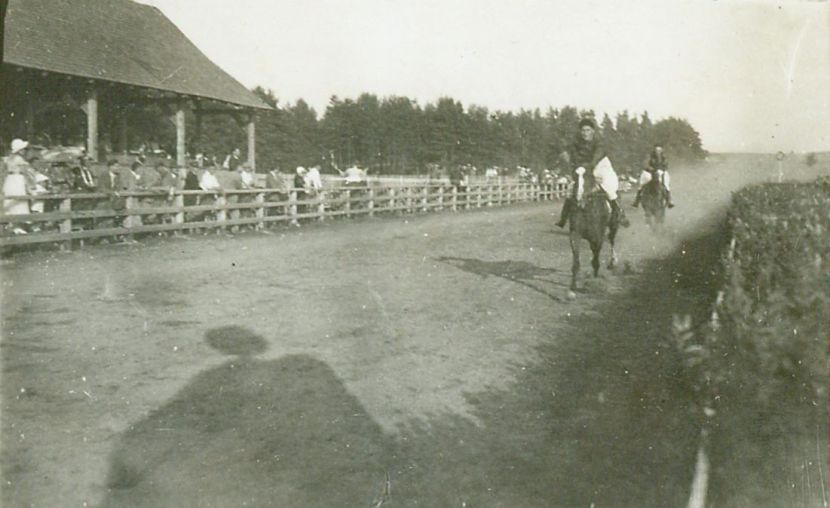 | Nr. inwentarzowy: MŁJ-XVI 1757 / 00 / 052 opis: Tor wyścigów konnych. Por. Michał Bohdanowicz na koniu z odmianami (kasztan?) w galopie (finisz?) po prostej przed trybuną. Za nim drugi koń. Wzdłuż ogrodzenia publiczność.data: okres mitingu wyścigowego w Wilnieczas powstania - daty graniczne: 1934-06-24 - 1934-07-22miejsce: Wilno, Pośpieszkaosoby: Rtm. Michał Bohdanowicz 1903-48 (syn Jana Bohdanowicza i Marii z Cywińskich, brat Heleny i Krystyny, mąż Wandy z domu Leskiej. W latach 1932-36 i przed II wojną w 4 Pułku Ułanów Zaniemeńskich, od 1936 w 13 Pułku Ułanów Wileńskich; nazywany "Misiem". Podczas kampanii wrześniowej trafił do niewoli, zmarł niedługo po powrocie z oflagu).tworzywo: papier fotograficzny, błyszczącytechnika: odbitka żelatynowo-srebrowa DOP, czarno-białazespół: album rodziny Bohdanowiczówwymiary (wys. x szer.): 40 x 64 [mm]