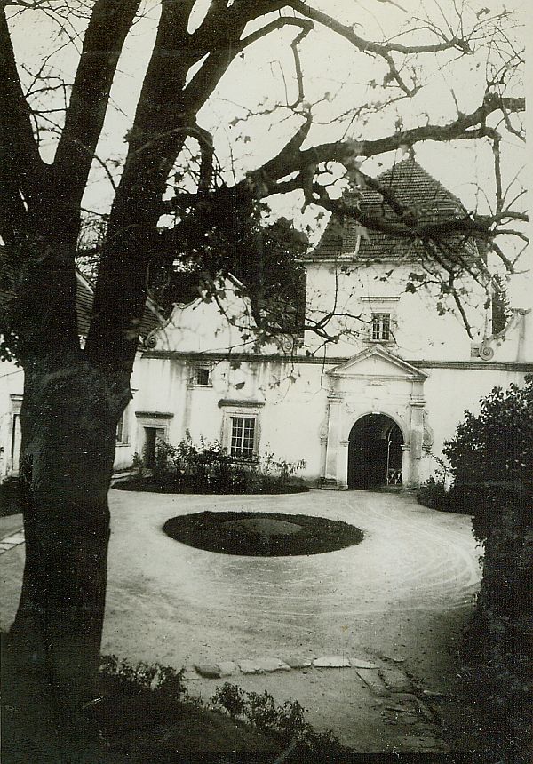 | Nr. inwentarzowy: MŁJ-XVI 1745 / 00 / 039 opis: Zamek w Świrzu - fragment z bramą wjazdową (od strony dziedzińca). Nad bramą nadbudówka z daszkiem mansardowym, krytym gontem. Przed bramą drzewo, krzewy, kwietnik - skraj parku. Majątek rodziny Lamezan-Salins, w 1931 r. należał do Tadeusza Komorowskiego i Ireny Komorowskiej z domu Lamezan.czas powstania - daty graniczne: 1931-10-01 - 1931-10-31miejsce: Świrz, majątek pp. Komorowskich położony na południowy wchód od Lwowa.osoby: Niewidoczni: Irena z Lamezanów Komorowska (1904–1968, dziedziczka Świrza), ppłk Tadeusz Komorowski (1895-1966, późniejszy gen. dyw. „Bór”, dowódca AK i powstania warszawskiego, Naczelny Wódz Polskich Sił Zbrojnych na Zachodzie).tworzywo: papier fotograficzny, błyszczącytechnika: odbitka żelatynowo-srebrowa DOP, czarno-białazespół: album rodziny Leskichwymiary (wys. x szer.): 111 x 79 [mm]
