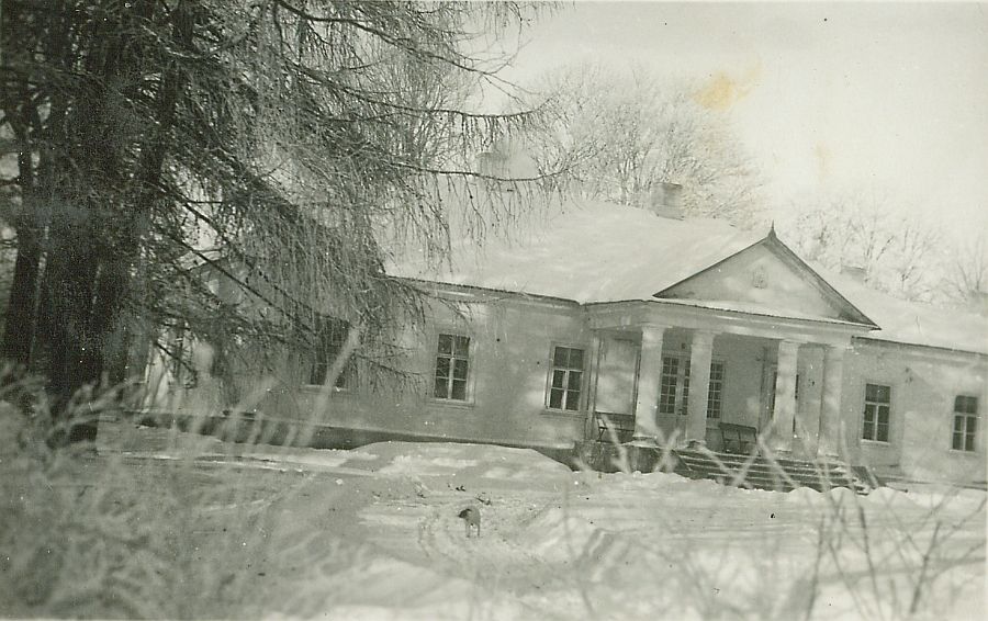 | Nr. inwentarzowy: MŁJ-XVI 1747 / 00 / 016 opis: Dwór Bohdanowiczów w Stajkach, święta Bożego Narodzenia. Zima, nawiązujący do klasycyzmu, parterowy dom wzniesiony na planie czworokąta i przykryty dachem gontowym. Z przodu taras z portykiem o 4 kolumnach z trójkątnym szczytem (z herbem Bohdanowiczów). Dom otoczony parkiem. Przed domem zaśnieżony gazon.czas powstania - daty graniczne: 1937-12-01 - 1937-12-31miejsce: Stajki - majątek Bohdanowiczów, obecnie wieś na Białorusi w rejonie wilejskim, obwodu mińskiegotworzywo: papier fotograficzny, błyszczącytechnika: odbitka żelatynowo-srebrowa DOP, czarno-białazespół: album rodziny Leskichwymiary (wys. x szer.): 53 x 84 [mm]