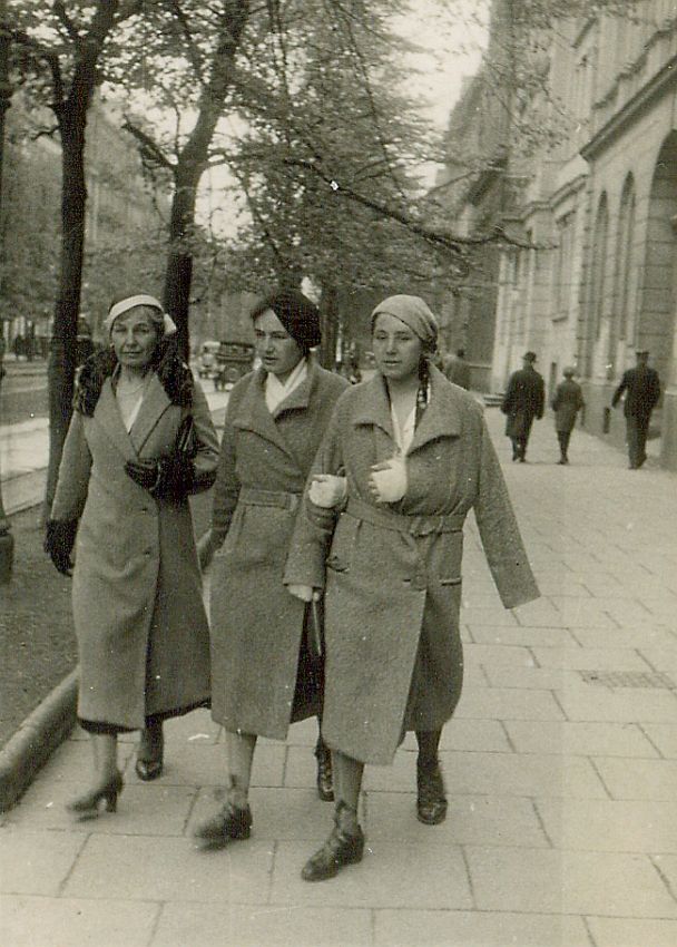 | Nr. inwentarzowy: MŁJ-XVI 1756 / 01 / 003 opis: Warszawską ulicą idą, od lewej: Maria Leska i jej córki: Anna Bohdaowicz i Wanda Leska. Kobiety w płaszczach, Wanda z zabandażowaną ręką na temblaku - po potłuczeniu się na koniu Talar.data: maj 1933 r.czas powstania - daty graniczne: 1933-05-01 - 1933-05-31miejsce: Warszawaosoby: Maria Leska 1886-1949 (matka Anny i Wandy), Anna Leska 1910-1998 ("Anka", później Leska-Daab, podczas II wojny światowej pilot w Wielkiej Brytanii); Wanda Bohdanowicz 1908-1991 (z domu Leska).tworzywo: papier fotograficzny, błyszczącytechnika: odbitka żelatynowo-srebrowa DOP, czarno-białazespół: album rodziny Bohdanowiczówwymiary (wys. x szer.): 84 x 62 [mm] Koń: 1. Talar III, wałach, maść kasztanowata - hod. Bogumiła Hebanowskiego; ur. przed 1928, prywatny koń Michała Bohdanowicza, który startował na nim w konkursach ujeżdżenia, skoków (np. Mitingi Popularne PZJ 1938-39 i WKKW ("Militari"), biegach myśliwskich, skiringu, uczestniczył w ćwiczeniach wojskowych. Dosiadała go też żona Michała - Wanda (m.in. w 1937 r. w Grudziądzu).., na zdjęciu: nie ma go na zdjęciu