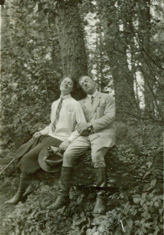 | Nr. inwentarzowy: MŁJ-XVI 1753 / 00 / 055 opis: Na leżącym pniu drzewa siedzą Janina Kotlińska i trzymający ją pod rękę Stanisław Madaliński. Kobieta w jasnej bluzce z długimi rękawami, krawacie, pumpach, wysokich butach, z laską i kapeluszem w rękach. Mężczyzna w jasnym garniturze i wysokich butach.data: sierpień 1929 r.czas powstania - daty graniczne: 1929-08-01 - 1929-08-31miejsce: Sobaków (łódzkie, majątek Stanisława Madalińskiego)osoby: Janina Kotlińska 1907-1989 („Nina”, "Ninon", córka Kazimierza i Eugenii zd. Grudzińskiej, siostra Edmunda); Stanisław Madaliński ("Dziedzic", właściciel Sobakowa)tworzywo: papier fotograficzny, błyszczącytechnika: odbitka żelatynowo-srebrowa DOP, czarno-białazespół: album rodziny Bohdanowiczówwymiary (wys. x szer.): 85 x 61 [mm]