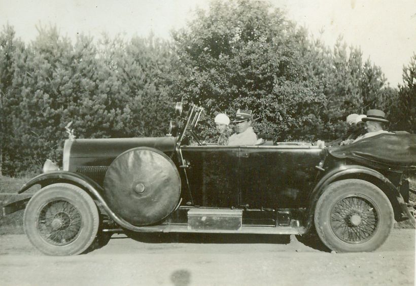 | Nr. inwentarzowy: MŁJ-XVI 1753 / 00 / 079 opis: Wycieczka samochodowa do Garwolina, piaszczysta droga przez sosnowy zagajnik. W samochodzie osobowym: za kierownicą rtm. Wilhelm Lewicki, obok Anna Leska, na tylnym siedzeniu (od lewej): Maria Leska, Wanda Leska, mężczyzna w jasnym płaszczu i kapeluszu.data: październik 1929 r.czas powstania - daty graniczne: 1929-10-01 - 1929-10-31miejsce: droga do Garwolinaosoby: Rtm. Wilhelm Rogala-Lewicki 1898-1992 Londyn ("Wil", jeździec klasy międzynarodowej, w 1929 r. reprezentował w konkursach W.S.W. - był w niej głównym instruktorem jazdy konnej); Anna Leska 1910-1998 ("Anka", później Leska-Daab, podczas II wojny światowej pilot w Wielkiej Brytanii); Maria Leska 1886-1949 (matka Wandy, Anny i Kazimierza), Wanda Leska 1908-1991 (później Bohdanowicz)tworzywo: papier fotograficzny, błyszczącytechnika: odbitka żelatynowo-srebrowa DOP, czarno-białazespół: album rodziny Bohdanowiczówwymiary (wys. x szer.): 85 x 116 [mm]