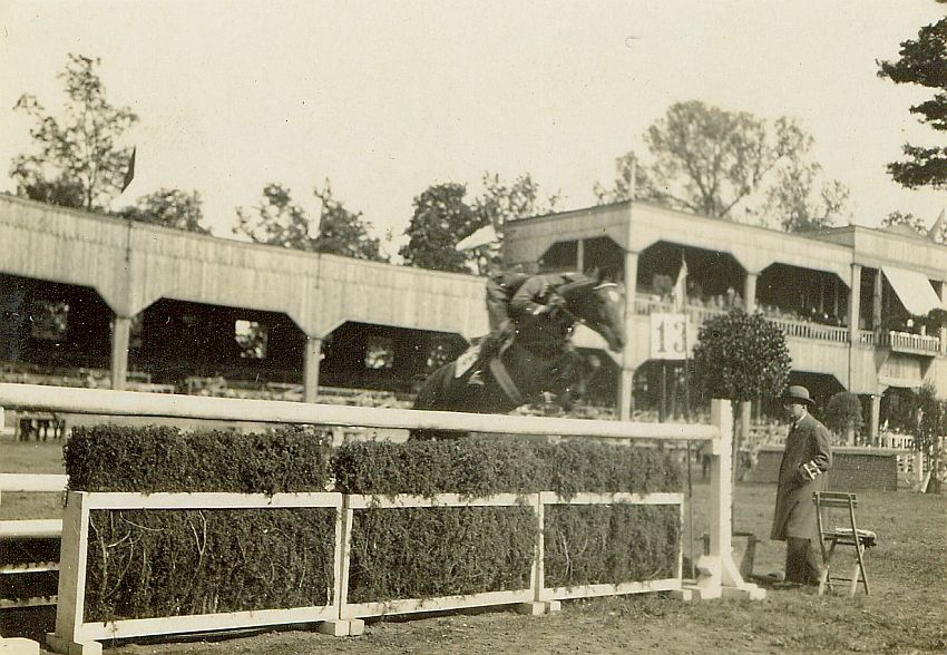 | Nr. inwentarzowy: MŁJ-XVI 1752 / 02 / 012 opis: Międzynarodowe Zawody Konne. Por. Stefan Starnawski na koniu Hannibal w skoku przez double-barre (nr 13). Przy przeszkodzie sędzia w stroju cywilnym. W tle trybuna z publicznością.czas powstania - daty graniczne: 1929-06-07 - 1929-06-07miejsce: Polska, Warszawa, Łazienki Królewskieosoby: Por./rtm. Stefan Starnawski 1899–1980, 20 i 14 p.u. 1923-24 I Kurs Podinstruktorów JK. Największe sukcesy przełom l. 20/30. – konie Hannibal, Jeruz(s)al. Wygrał PN w Warszawie (1927) i Nowym Jorku (1927 i 1929), wygrywał w Nicei, Rzymie, Tallinie. W pułkach szkolił jeźdźców. Kampania wrześniowa w 14 p.u., potem PSZ. W stopniu majora był dowódcą i z-cą dow. batalionu jazłowieckiego w ramach 10 BK Pancernej. W 1945 dowodził 14 p.u. w stopniu pułkownika. Pułk rozformowano w 1947. Emigracja w Wlk. Bryt.tworzywo: papier fotograficzny, błyszczącytechnika: odbitka żelatynowo-srebrowa DOP, czarno-białazespół: album rodziny Bohdanowiczówwymiary (wys. x szer.): 62 x 86 [mm] Koń: 1. Hannibal, wałach, rasa: xo?, maść kasztanowata - Prywatny koń S. Starnawskiego, podarunek od ojca. Starnawski był wysoki, a Hannibal drobny. W 20 p.u. wykazał talent sportowy. Wygrywali konkursy w skokach i WKKW. Szef Dep. Kaw. poprosił o użyczenie prywatnego konia dla grupy olimpijskiej. Hannibal buntował się w Grudziądzu, w nowych warunkach. W 1926 startował pod innymi oficerami, a od 1927 znów pod Starnawskim (sukcesy międzynarodowe). Od 1931 startował na nim rtm. Królikiewicz, w 1932 był właścicielem Hannibala, w 1934 oddał go do reprezentacji.