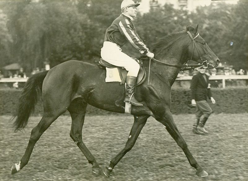 czas powstania - daty graniczne: 1932-09-24 - 1932-09-24miejsce: Warszawa, Pole Mokotowskieosoby: Antoni Gajewski - w 1932 r. dosiadał koni jako chłopiec, później jako jeździec.tworzywo: papier fotograficzny, półbłyszczącytechnika: odbitka żelatynowo-srebrowa DOP, czarno-białazespół: album rodziny Bohdanowiczówwymiary (wys. x szer.): 136 x 184 [mm] Koń: 1. Herold, ogier, rasa: xx, maść gniada, ur. 1925 - Mości Książę i Helenka, hod. Fr. Wężyka, wł. Gr. of. 9 p.s.k., od 1932 Bohdanowicz, na przeł. l. 20/30 XX w. startował w gon. płaskich, płotowych i przeszkodowych, na torach w Wilnie, Grajewie, Warszawie, Bydgoszczy, Ciechocinku, Kielcach, Łodzi, Łucku, Poznaniu, Katowicach, pod Bohdanowiczem, Rómmlem, Bylczyńskim, chłopcami: Koreckim i Głowackim, dżokejami: Czernuszenko, Sakowiczem, Kucharskim, Szyszkowskim, Amosse, Ziemiańskim, jeźdźcami: Cherubimem i Lipińskim; tr.: Pacurko, Bylczyński, Bohdanowicz