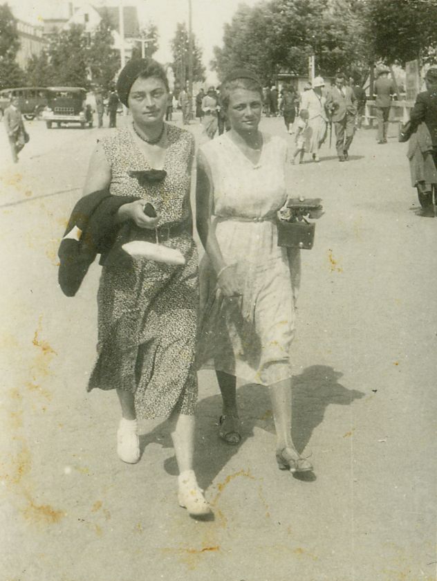 | Nr. inwentarzowy: MŁJ-XVI 1640 / 00 / 035 opis: Rajd Poznań-Gdynia, zorganizowany przez Śląski Klub Jazdy Konnej - spacer po ulicach Gdyni, centrum miasta. W letnich sukienkach i beretach spacerują: K. Dobrogoyska (na przedramieniu przerzucony żakiet, w ręku paczka z ciastkami?) i R. Brökere (w ręku torebka i portfel). Z tyłu inni spacerowicze.data: podano początkową i końcową datę rajduczas powstania - daty graniczne: 1933-08-03 - 1933-08-28miejsce: Gdyniaosoby: Krystyna Dobrogoyska (1902-1975) i Romana (Roma) Brökere(1909-2001, później Daszkowska)tworzywo: papier fotograficzny, błyszczącytechnika: odbitka żelatynowo-srebrowa DOP, czarno-białazespół: album rodziny Brökerewymiary (wys. x szer.): 80 x 63 [mm]