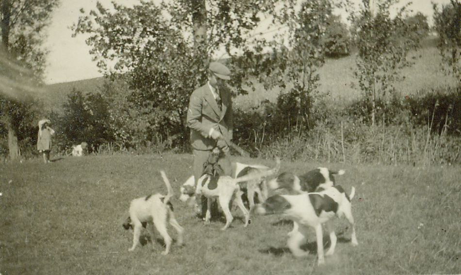 | Nr. inwentarzowy: MŁJ-XVI 1640 / 00 / 006 opis: Rajd Poznań-Gdynia, zorganizowany przez Śląski Klub Jazdy Konnej. Łąka, z tyłu drzewa, krzewy, pagórek. Młody mężczyzna w jasnym garniturze i kaszkiecie z kilkoma psami myśliwskimi - foxhoundy? W głębi dziewczynka i niewyraźna sylwetka.data: podano początkową i końcową datę rajduczas powstania - daty graniczne: 1933-08-03 - 1933-08-28miejsce: Jagniewice (na trasie leżą przed Wąsoszem, zdjęcia wklejono bez zachowania chronologii)tworzywo: papier fotograficzny, błyszczącytechnika: odbitka żelatynowo-srebrowa DOP, czarno-białazespół: album rodziny Brökerewymiary (wys. x szer.): 47 x 70 [mm]