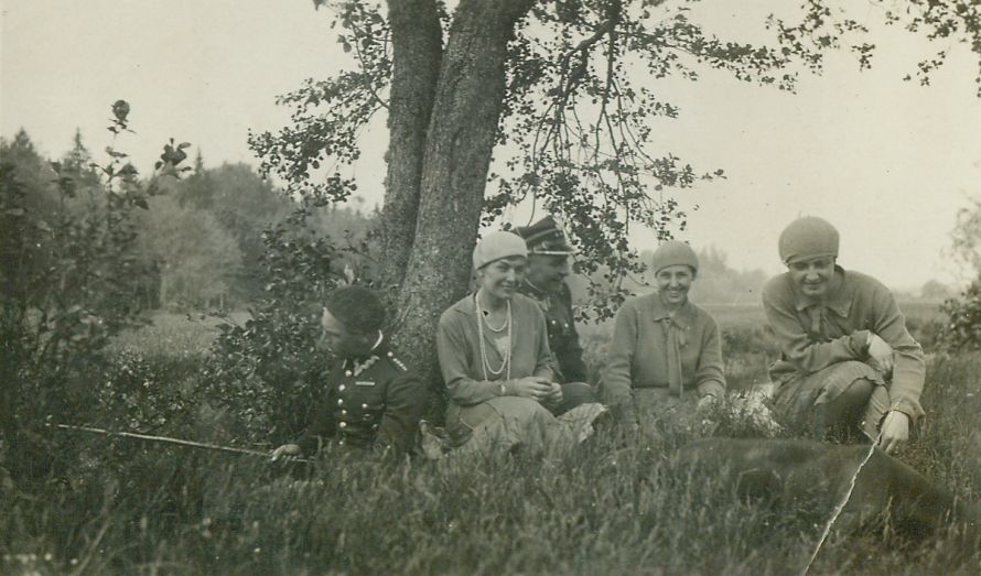 | Nr. inwentarzowy: MŁJ-XVI 1743 / 00 / 009 opis: Odpoczynek podczas wycieczki do Białowieży. Pod drzewem siedzą: rtm. Wilhelm Lewicki, Maria Leska, rtm. Nowacki, Wanda Leska, Anna Leska. Mężczyźni w mundurach, kobiety w beretach, bluzkach, spódnicach.czas powstania - daty graniczne: 1930-05-01 - 1930-05-31miejsce: Białowieżaosoby: Rtm. Wilhelm Rogala-Lewicki 1898-1992, Maria Leska 1886-1949 (matka Wandy, Anny i Kazimierza), rtm. Czesław Nowacki, Wanda Leska 1908-1991, Anna Leska 1910-1998.tworzywo: papier fotograficzny, błyszczącytechnika: odbitka żelatynowo-srebrowa DOP, czarno-białazespół: album rodziny Leskichwymiary (wys. x szer.): 67 x 108 [mm]