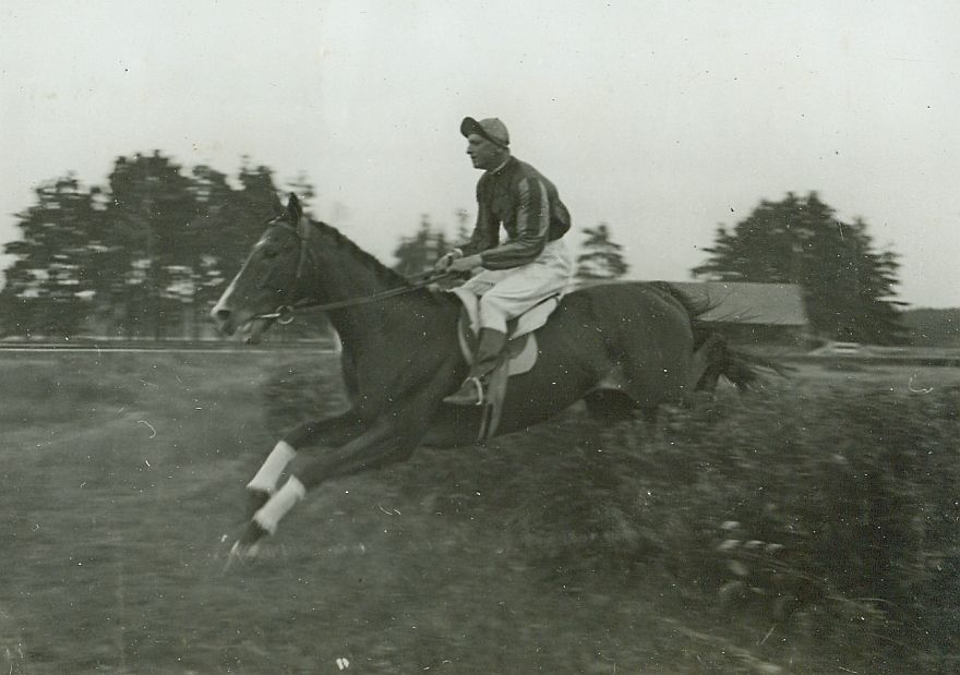 | Nr. inwentarzowy: MŁJ-XVI 1746 / 00 / 085 opis: Tor wyścigów konnych. Steeple-chase im. Wojewody Wileńskiego Płk. Ludwika Bociańskiego. Michał Bohdanowicz na koniu Nestor - lądowanie po przeszkodzie. Jeździec w stroju wyścigowym (jasna czapka, ciemna kurtka z jaśniejszymi pasami na rękawach, białe bryczesy). Koń z zabandażowanymi przednimi nogami. W tle zabudowania, drzewa.czas powstania - daty graniczne: 1936-07-16 - 1936-07-16miejsce: Wilno, Pośpieszka.osoby: Rtm. Michał Bohdanowicz "Miś" (1903-1948), 13 p.u., dowódca 1 szwadronu "Tatarskiego". tworzywo: papier fotograficzny, błyszczącytechnika: odbitka żelatynowo-srebrowa DOP, czarno-białazespół: album rodziny Leskichwymiary (wys. x szer.): 84 x 117 [mm] Koń: 1. Nestor - koń, na którym M. Bohdanowicz startował w steeple-chase.