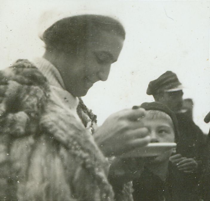 Nr. inwentarzowy: MŁJ-XVI 1745 / 00 / 044 opis: Anna Leska podczas biegu myśliwskiego je bigos?, grochówkę?czas powstania - daty graniczne: 1931-11-03 - 1931-11-03miejsce: Stanisławówosoby: Anna (Anka) Leska, później Leska-Daab (1910-1998).inne nazwy własne: bieg św. Hubertatworzywo:papier fotograficzny, błyszczącytechnika:odbitka żelatynowo-srebrowa DOP, czarno-białazespół:album rodziny Leskichwymiary (wys. x szer.): 40 x 41 [mm]