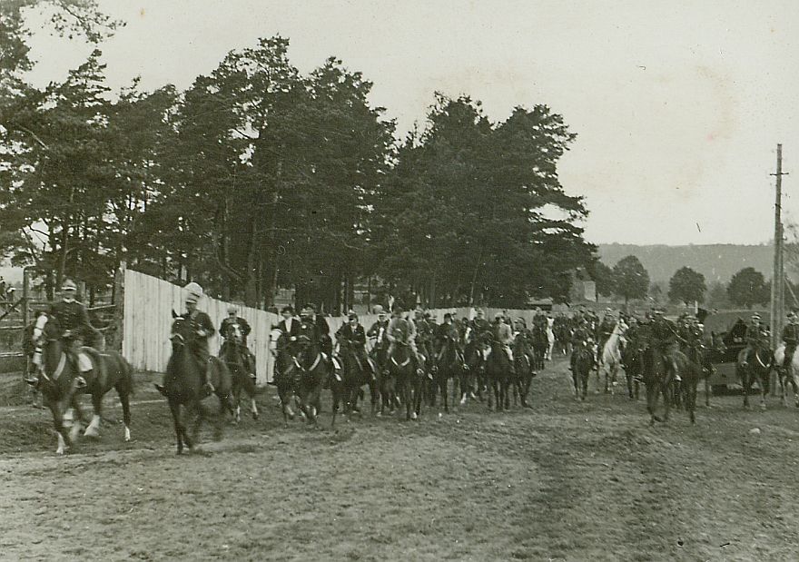 | Nr. inwentarzowy: MŁJ-XVI 1747 / 00 / 001 opis: Bieg św. Huberta Wileńskiej Brygady Kawalerii – wyjazd na start. Kilkadziesiąt osób konno - wojskowi, cywile, amazonki.czas powstania - daty graniczne: 1937-10-17 - 1937-10-17miejsce: Wilno, Pośpieszka.inne nazwy własne: 3 SBK, 3 Samodzielnej Brygady Kawalerii (zmiana nazwy 1 kwietnia 1937)tworzywo: papier fotograficzny, błyszczącytechnika: odbitka żelatynowo-srebrowa DOP, czarno-białazespół: album rodziny Leskichwymiary (wys. x szer.): 60 x 83 [mm]