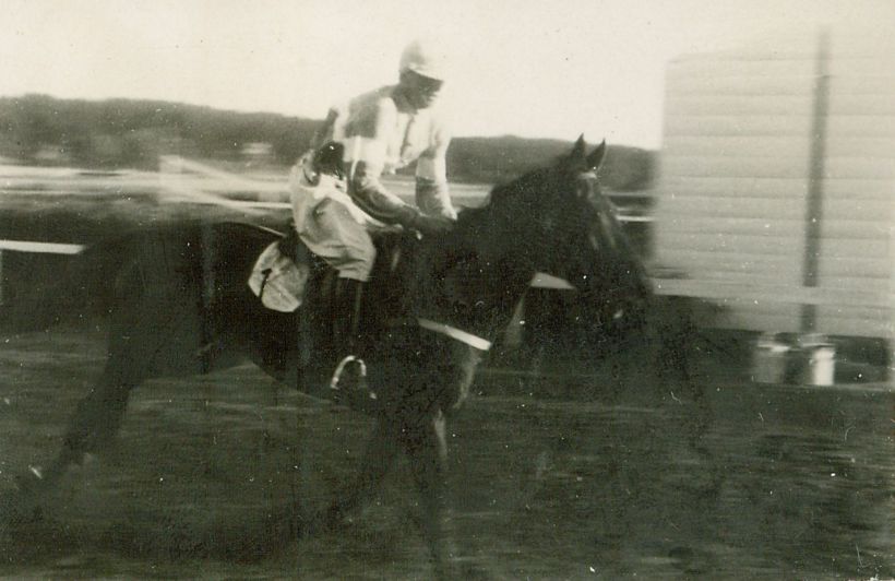 data: miting wyścigowy w Wilnie, daty pierwszej i ostatniej gonitwy, w której Korytkowski dosiadał Anna Belleczas powstania - daty graniczne: 1934-06-29 - 1934-07-19miejsce: Wilno, Pośpieszkaosoby: Por. Włodzimierz Korytkowski ur. 1901 (14 p.u., wszechstronny jeździec wyścigowy i sportowy klasy międzynarodowej).tworzywo: papier fotograficzny, błyszczącytechnika: odbitka żelatynowo-srebrowa DOP, czarno-białazespół: album rodziny Bohdanowiczówwymiary (wys. x szer.): 55 x 82 [mm] Koń: 1. Anna Belle, klacz, rasa: xx, maść skarogniada, ur. 1930 - Illuminator i Beluga, hod. Konstantego Biskupskiego, wł. T. Bruszewskiego, później grona oficerów 14 p.u., startowała w wyścigach płaskich, płotowych i przeszkodowych na torach w Warszawie, Łodzi, Lublinie, Lwowie, Zakopanem i Wilnie w l. 1931-1935, m.in. pod M. Bohdanowiczem i Wł. Korytkowskim, który ją także trenował. Opisywana także jako ciemnogniada.