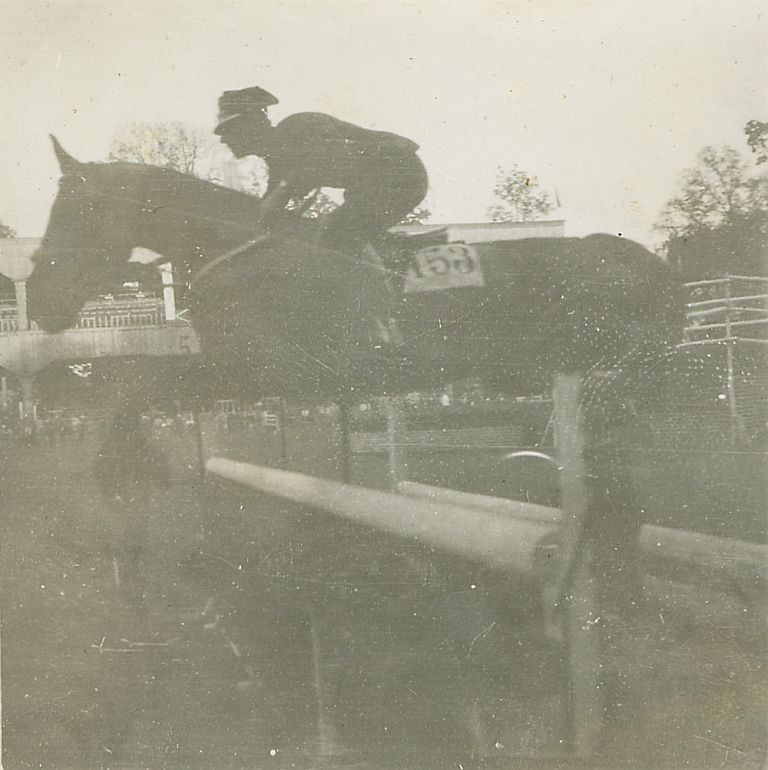| Nr. inwentarzowy: MŁJ-XVI 1744 / 00 / 074 opis: Międzynarodowe i Krajowe Konkursy Hipiczne w Łazienkach. Por. Stanisław Czerniawski w skoku przez doublebarre na koniu Skok o krok. Zdjęcie ciemne, nieostre, widać jasny potnik z numerem 153. W tle inne przeszkody, trybuny z publicznością, drzewa.czas powstania - daty graniczne: 1931-05-28 - 1931-06-08miejsce: Warszawa, hipodrom w Łazienkachosoby: por. Stanisław Czerniawski (1905-1939) 17 p.u.tworzywo: papier fotograficzny, błyszczącytechnika: odbitka żelatynowo-srebrowa DOP, czarno-białazespół: album rodziny Leskichwymiary (wys. x szer.): 60 x 60 [mm] Koń: 1. Skok o krok, wałach, maść gniada - hod. J. Czapski, Modrze, własność ppor. Walicki