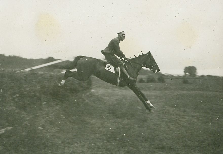 | Nr. inwentarzowy: MŁJ-XVI 1747 / 00 / 085 opis: Tor wyścigów konnych - wojskowa gonitwa z przeszkodami Budsławia (dawniej miasteczko, obecnie wieś na Białorusi w rejonie miadziolskim). Rtm. Michał Bohdanowicz na klaczy Pilica ląduje po skoku przez przeszkodę. Na potniku nr 10.czas powstania - daty graniczne: 1938-06-23 - 1938-06-23miejsce: Wilno, Pośpieszkaosoby: Rtm. Michał Bohdanowicz (1903-1948). Syn Jana i Marii z Cywińskich. W latach 1932-36 i przed II wojną służył w 4 p.u., od 1936 w 13 p.u. jako dowódca 1 szwadronu "Tatarskiego" (do 15.05.1938).tworzywo: papier fotograficzny, błyszczącytechnika: odbitka żelatynowo-srebrowa DOP, czarno-białazespół: album rodziny Leskichwymiary (wys. x szer.): 60 x 82 [mm] Koń: 1. Pilica, klacz - Harlekin - Brama, hod. K. Czermiński, wł. W. Wojtowicz. Koń, na którym rtm. M. Bohdanowicz startował w 1938 r. w gonitwach w Wilnie-Pośpieszce, na zdjęciu: I miejsce