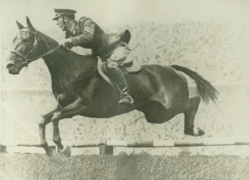 | Nr. inwentarzowy: MŁJ-XVI 1639 / 00 / 055 opis: Igrzyska Olimpijskie - konkurs skoków do WKKW. Amerykanin kpt. Earl Foster Thomson na klaczy Jenny Camp w skoku przez drąg nad żywopłotem. W głębi ogromne trybuny stadionu olimpijskiego w Berlinie.data: podano daty rozgrywania konkurencji jeździeckich na IO w Berlinieczas powstania - daty graniczne: 1936-08-12 - 1936-08-16miejsce: Berlinosoby: Amerykanin kpt. Earl Foster Thomson, olimpijczyk WKKW: Los Angeles 1932 ind. srebrny medal, zesp. złoty medal, Berlin 1936 ind. srebrny medal, Londyn 1948 zesp. złoty medal; ujeżdżenie: Londyn 1948 ind. 8, zesp. srebrny medalinne nazwy własne: Wszechstronny Konkurs konia Wierzchowegotworzywo: papier fotograficzny, matowytechnika: odbitka żelatynowo-srebrowa z innej odbitkizespół: album Clemensa Nagla Międzynarodowi artyści w jeździe przez przeszkodywymiary (wys. x szer.): 120 x 161 [mm] Koń: 1. Jenny Camp, klacz - WKKW-istka, IO Los Angeles 1932 ind. srebrny medal, zesp. złoty medal, IO Berlin 1936 ind. srebrny medal
