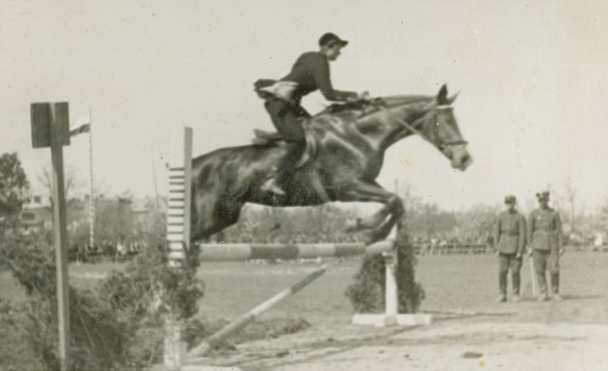 | Nr. inwentarzowy: MŁJ-XVI 1641 / 00 / 011 opis: Zawody w Gnieźnie organizowane przez Komitet Targów Końskich w Gnieźnie. R. Brökere w skoku przez stacjonatę na koniu Bianka. Amazonka w ciemnym stroju jeździeckim. Za przeszkodą stoi 2 żołnierzy. W tle szranki, publiczność, polska flaga, zabudowania i drzewa. Przeszkody 100 cm, szer. do 250 cm.czas powstania - daty graniczne: 1934-04-29 - 1934-04-29miejsce: Gniezno, hipodrom Komitetu Targów Końskich w Gnieźnieosoby: Romana (Roma) Brökere(1909-2001, ze Strumian, później Daszkowska)inne nazwy własne: start w jednym z konkursów: nr 3 dla jeźdźców cywilnych, nr 5 dla pańtworzywo: papier fotograficzny, półbłyszczącytechnika: odbitka żelatynowo-srebrowa DOP, czarno-białazespół: album rodziny Brökerewymiary (wys. x szer.): 89 x 138 [mm] Koń: 1. Bianka, klacz, maść kasztanowata, ur. 1924 - nieznanej hodowli, wł. Romy Brökere, startowała w konkursach skoków przez przeszkody, na zdjęciu: 10 lat