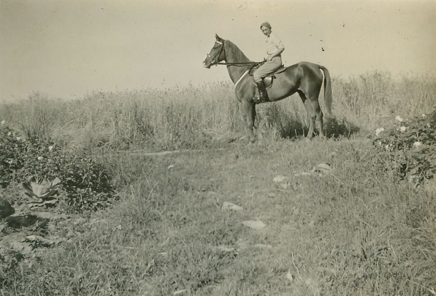| Nr. inwentarzowy: MŁJ-XVI 1629 / 00 / 039 opis: Na tle łanu zboża amazonka na kasztanowatej, szlachetnej klaczy. Kobieta w berecie, długich butach, bryczesach i jasnej bluzce, koń w ogłowiu z polskim nachrapnikiem i sportowym siodle z napierśnikiem.czas powstania - daty graniczne: 1938-06-01 - 1939-08-31miejsce: okolice Hrubieszowa(?)tworzywo: papier fotograficzny, błyszczący, Kodak Veloxtechnika: odbitka żelatynowo-srebrowa DOP, czarno-białazespół: album rodziny Grotthuswymiary (wys. x szer.): 61 x 86 [mm]