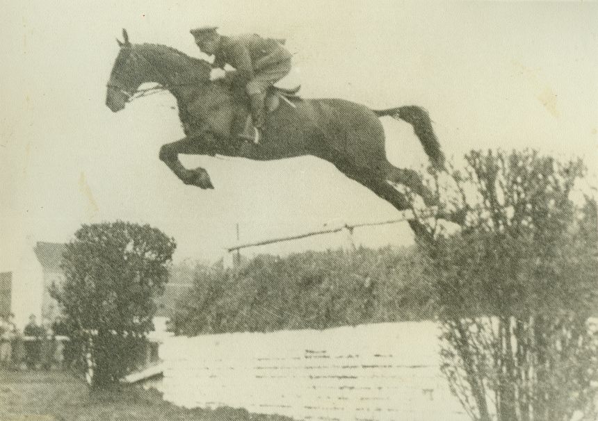 | Nr. inwentarzowy: MŁJ-XVI 1639 / 00 / 042 opis: Belg komendant/dowódca van Derton na ciemnej maści koniu Sunny Boy w zeskoku przez stacjonatkę z trawiastego, podmurowanego bankietu. PO bokach krzewy, w tle szranki, ludzie, budynek.czas powstania - daty graniczne: 1929-01-01 - 1939-08-31miejsce: jeden z europejskich hipodromówosoby: Belg cdt. (komendant/dowódca/szef ekipy?) van Dertontworzywo: papier fotograficzny, matowytechnika: odbitka żelatynowo-srebrowa z wydrukuzespół: album Clemensa Nagla Międzynarodowi artyści w jeździe przez przeszkodywymiary (wys. x szer.): 125 x 172 [mm] Koń: 1. Sunny Boy