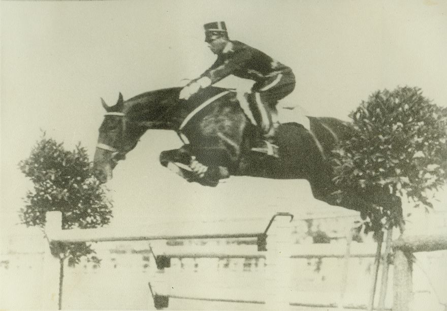 | Nr. inwentarzowy: MŁJ-XVI 1639 / 00 / 057 opis: Szwed rtm. Carl-Adam Stjernswärd w skoku (czapka typu kepi, na bryczesach lampasy) na koniu ciemnej maści. Przeszkoda - okser z jasnych drągów ozdobiony małymi drzewkami. Koń w rzędzie sportowym, jasny potnik, ogłowie wędzidłowe.czas powstania - daty graniczne: 1929-01-01 - 1939-08-31osoby: Szwed rtm. Carl-Adam Stjernswärd - olimpijczyk, startował w WKKW na IO w Berlinie 1936inne nazwy własne: skoki przez przeszkody, Wszechstronny Konkurs Konia Wierzchowegotworzywo: papier fotograficzny, matowytechnika: odbitka żelatynowo-srebrowa z wydrukuzespół: album Clemensa Nagla Międzynarodowi artyści w jeździe przez przeszkodywymiary (wys. x szer.): 124 x 172 [mm]